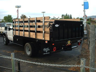 Here is a Ford Superduty with a Harbor 12 Foot Stakebed with a 1600 pound Tommy Gate Lift Gate. What a great way to be able to lift heavy cargo into the stakebed. A great combination!