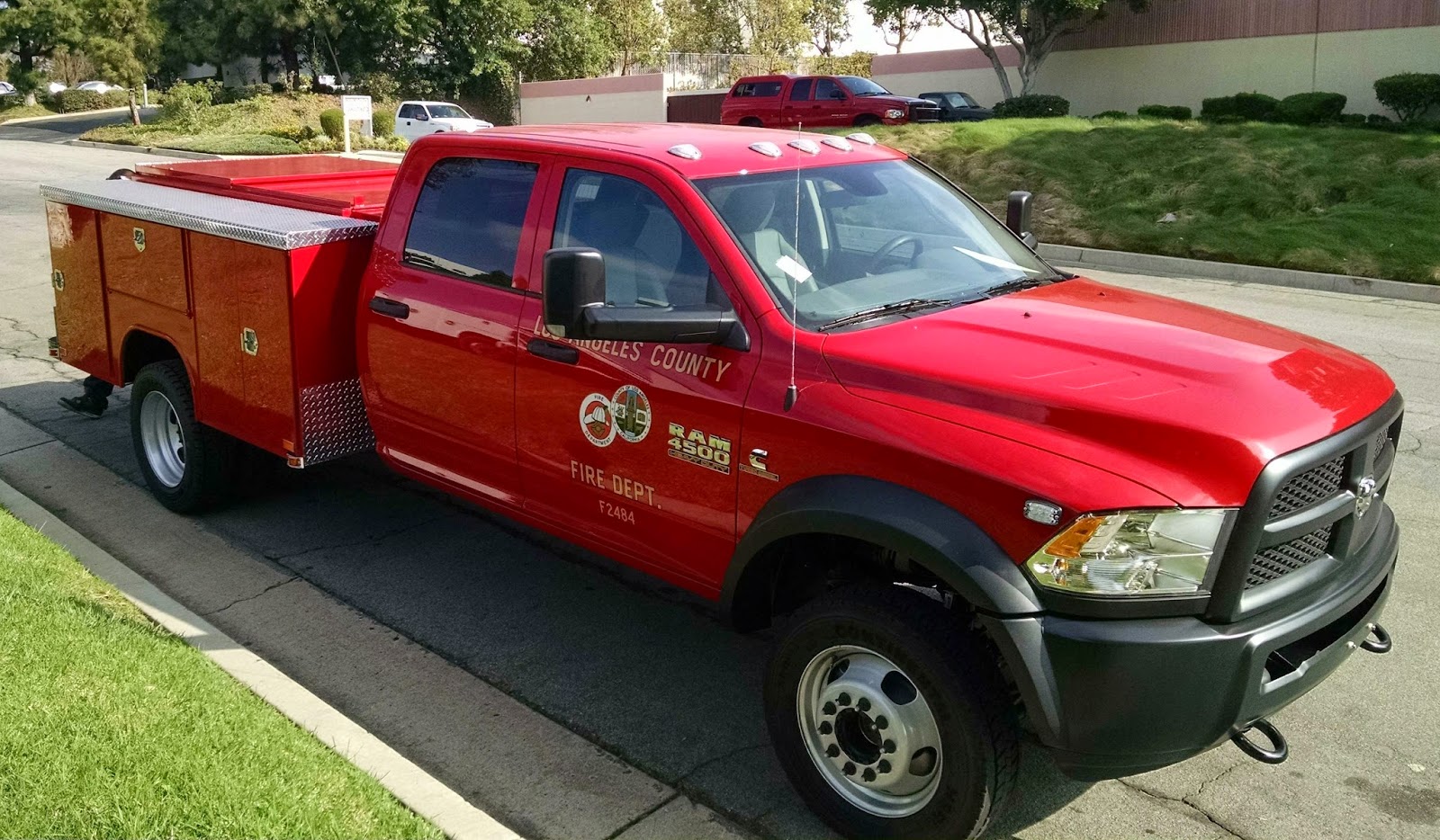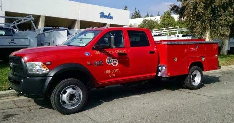 Los Angeles County gets a very sharp looking Ram Crew Cab Dually fire truck with a Harbor TradeMaster service body. This unit has a 2 piece cargo bed enclosure to provide an out of sight cargo secure.