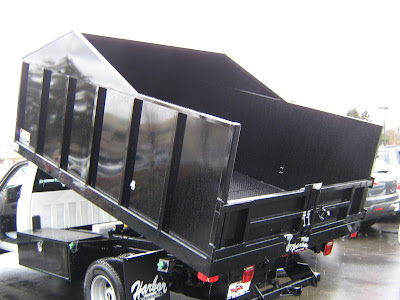This chipper body comes with a low roof so that it won't hold too much weight in wood chips and reduces the chance that chips will be blown away. It can also be used as a debris body or a landscaping body. Just another idea on the dump body that met a customers specific needs. We do custom!